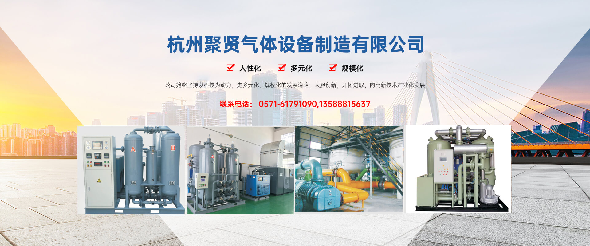 杭州聚賢氣體設(shè)備制造有限公司坐落在美麗的富春江畔,位于杭州富陽胥口工業(yè)園區(qū),處于杭州西湖與**名勝風(fēng)景區(qū)——千島湖之間,經(jīng)濟發(fā)達、交通十分便利。杭州聚賢氣體設(shè)備制造有限公司是一家以氣體凈化、分離、混合為專業(yè)的企業(yè)。注冊資金3000萬元,已通過ISO—9001質(zhì)量體系認(rèn)證。公司始終堅持以科技為動力,走多元化、規(guī)模化的發(fā)展道路,大膽創(chuàng)新,開拓進取,向高新技術(shù)產(chǎn)業(yè)化發(fā)展。